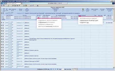 - Запрос состоит из заголовка, где хранятся данные об авторе, дате создания, статусе и т.д., и содержания, где приведены значения атрибутов позиции на момент создания запроса, предлагаемые автором значения и значения, введенные экспертом по факту обработки (т.е., что было, что надо и что стало).