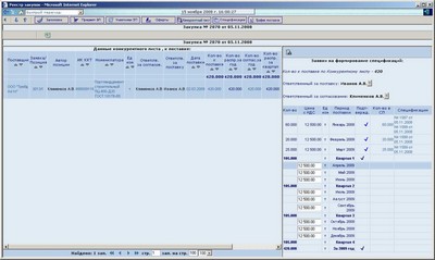- По мере того, как подходит срок закупки части количества в соответствующий период, руководитель, ответственный за согласование, подтверждает распределенное количество, после чего формируется спецификация с поставщиком стандартного вида.