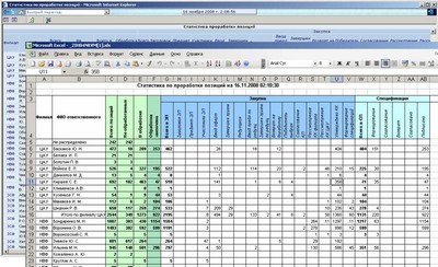 - Статистика по проработке позиций заявок содержит в себе информацию о количестве позиций заявок на различных этапах бизнес-процессов, сгруппированную по пользователям (ответственным исполнителям).